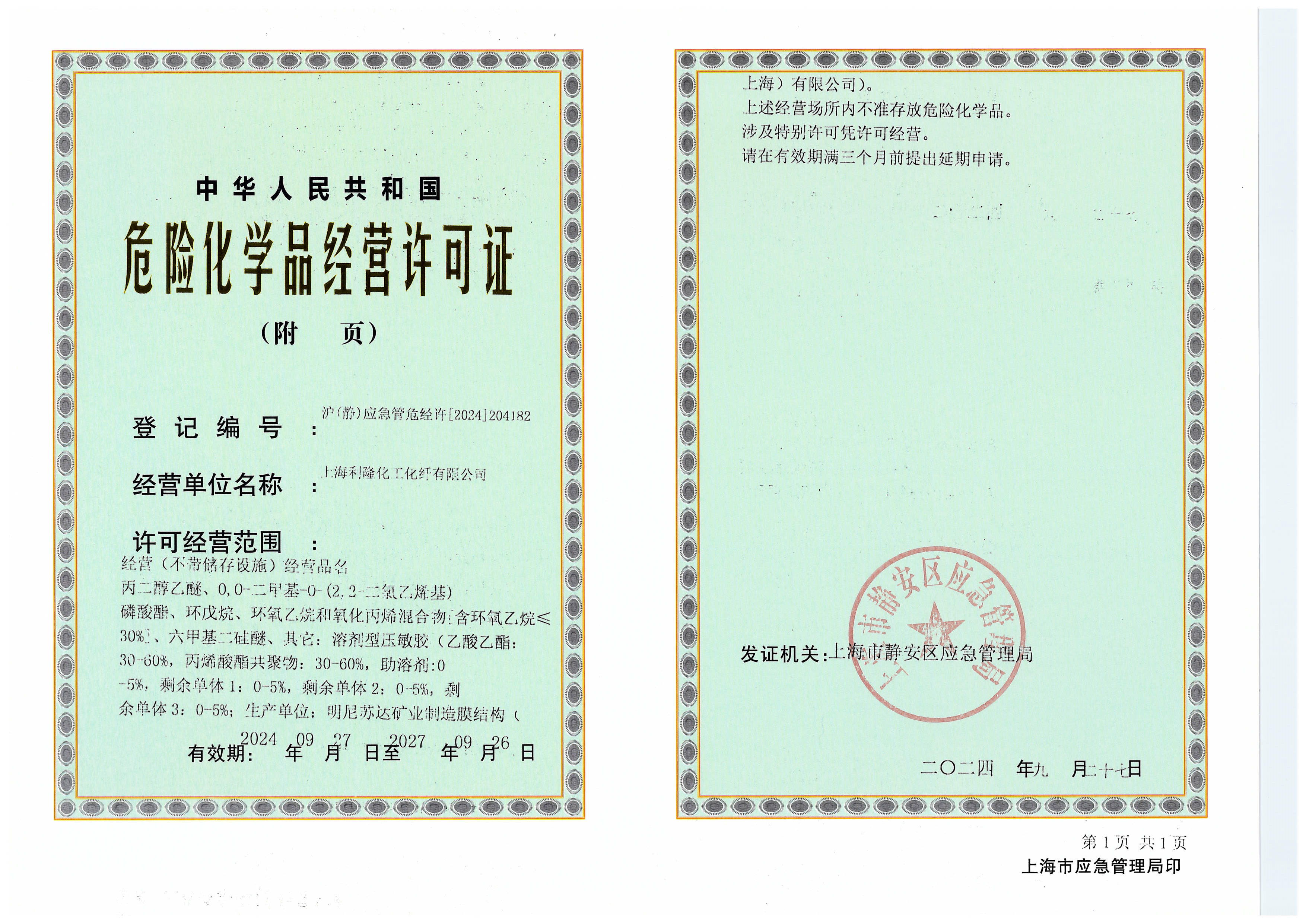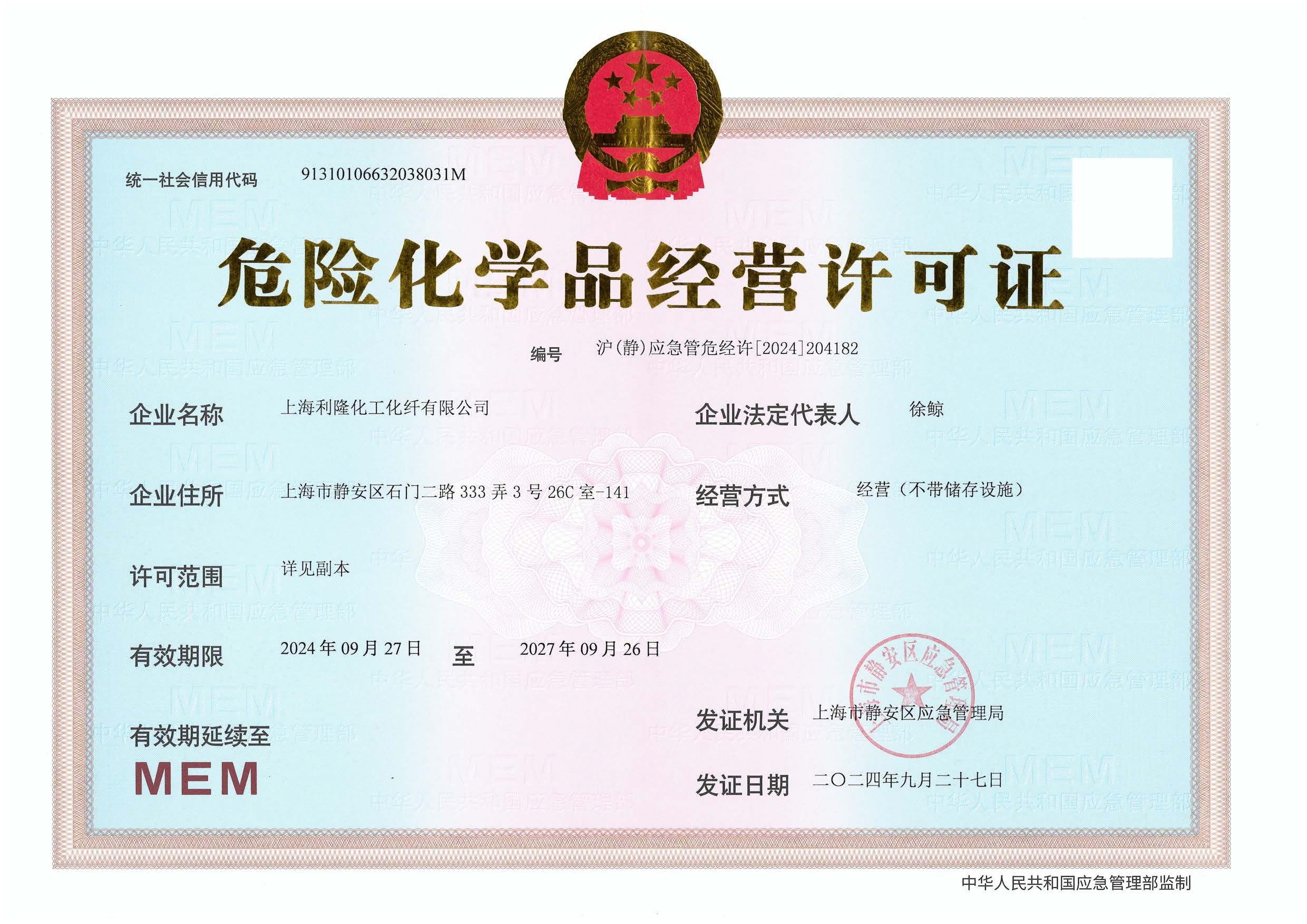 危险化学品经营许可证 (2024-2027)