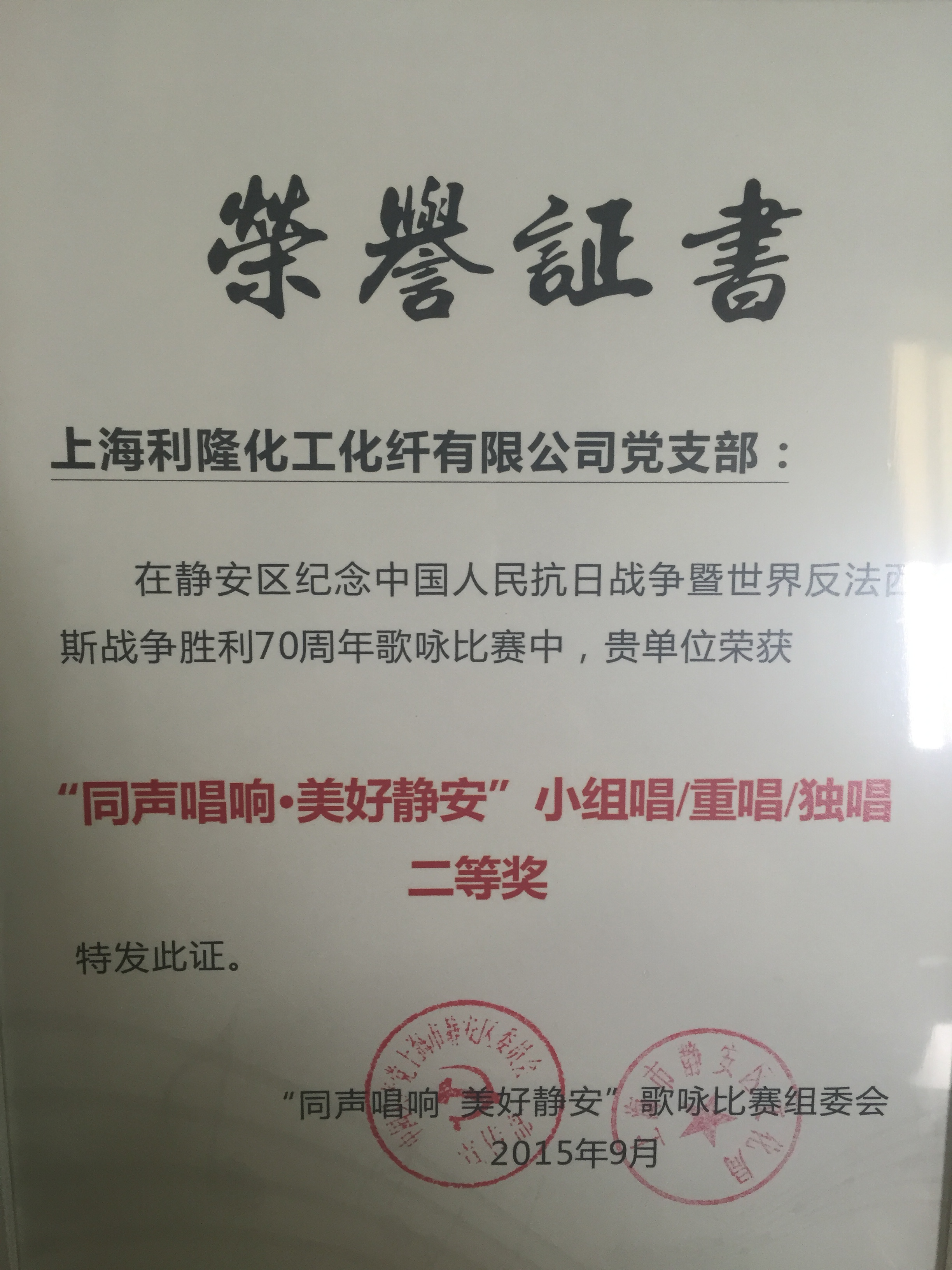 党建小组唱获奖证书