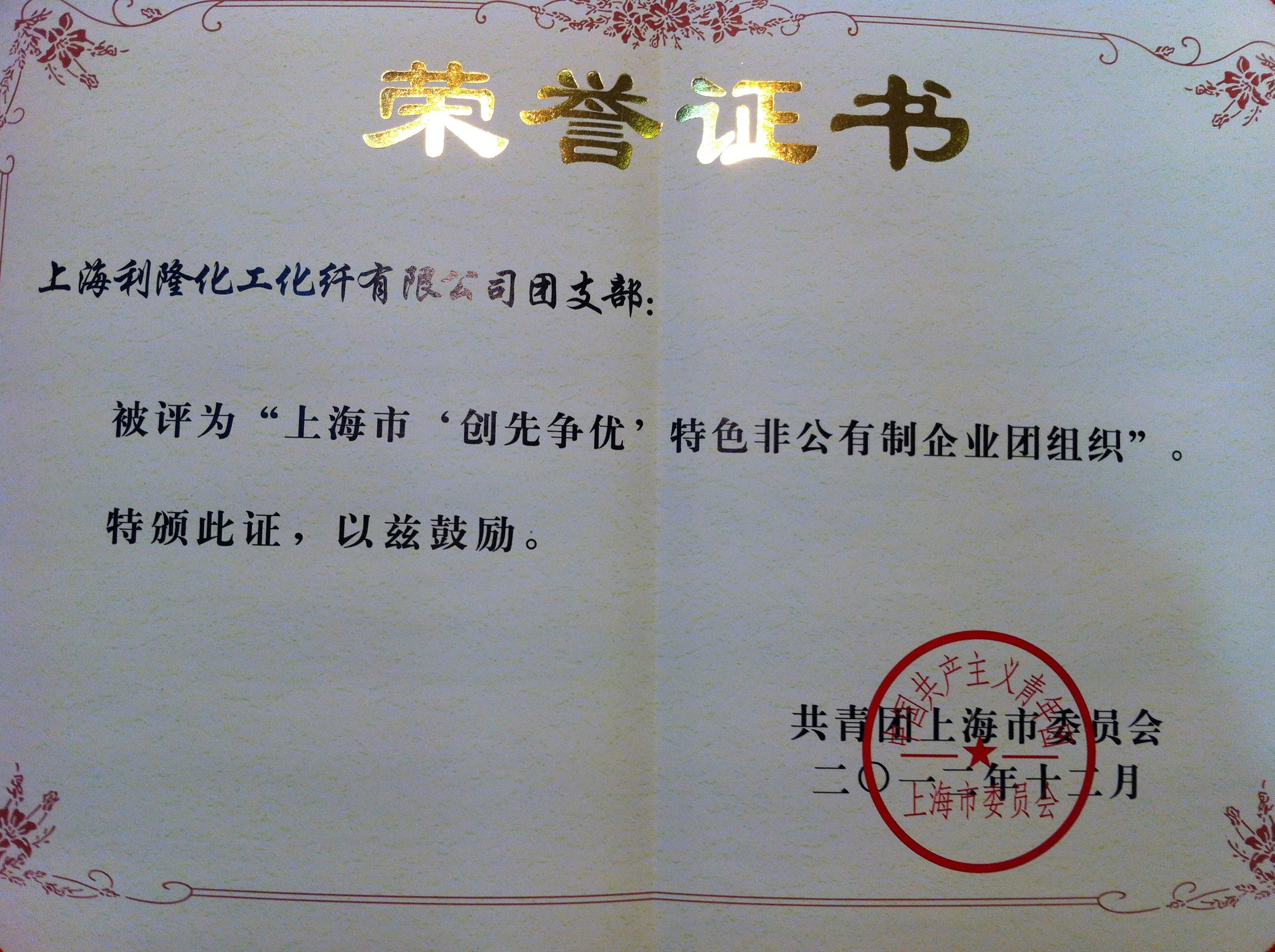 利隆团支部证书