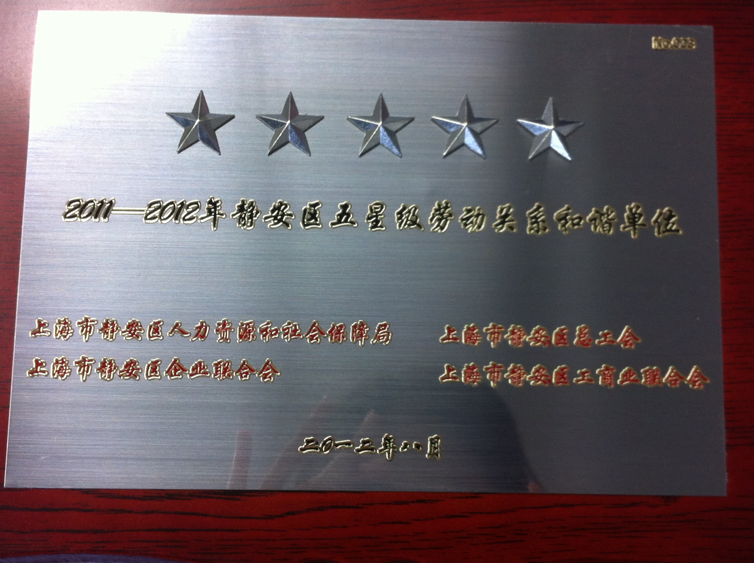 2011-2012年静安区五星劳动关系和谐单位
