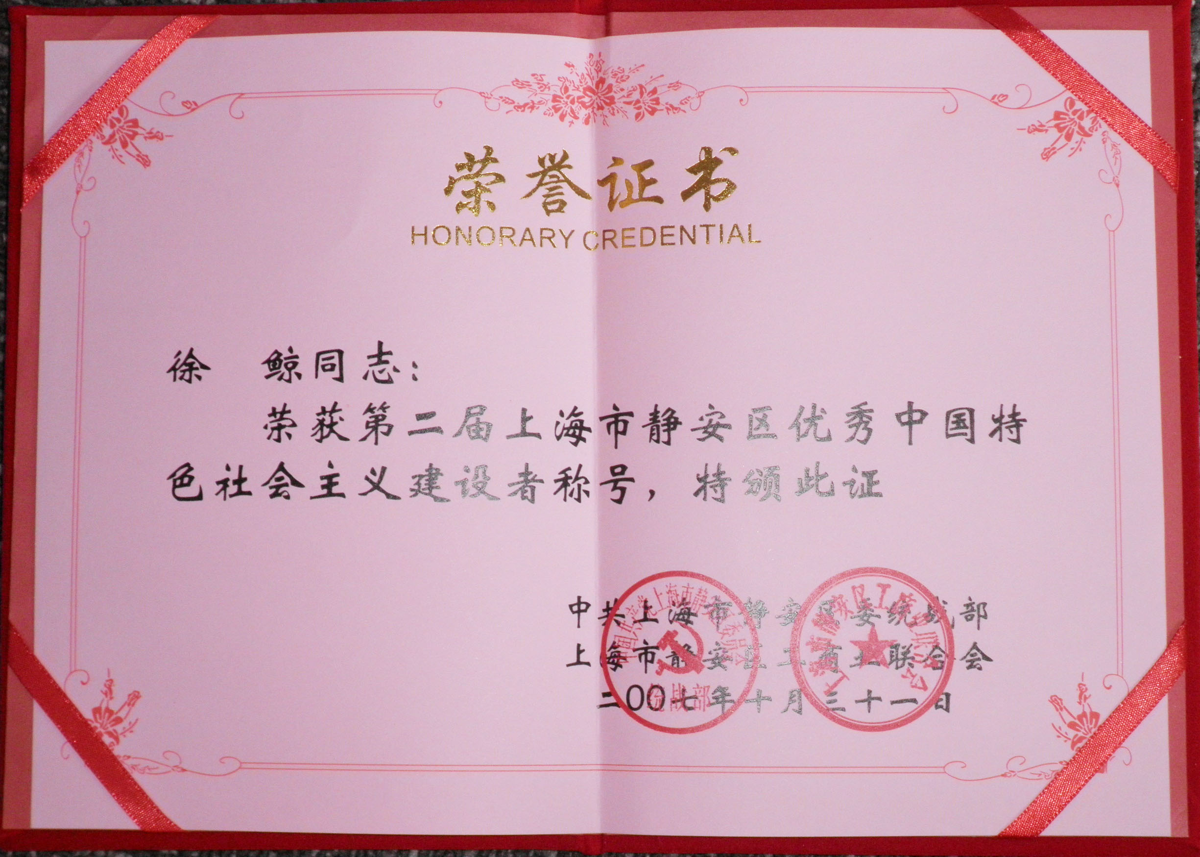 第二届上海市静安区优秀中国特色社会主义建设者称号