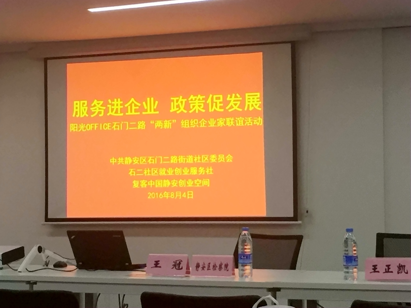 8月4日下午2时,在静安区凯迪克大厦23楼复客中国创业基地召开了“两新”组织企业家联谊活动。