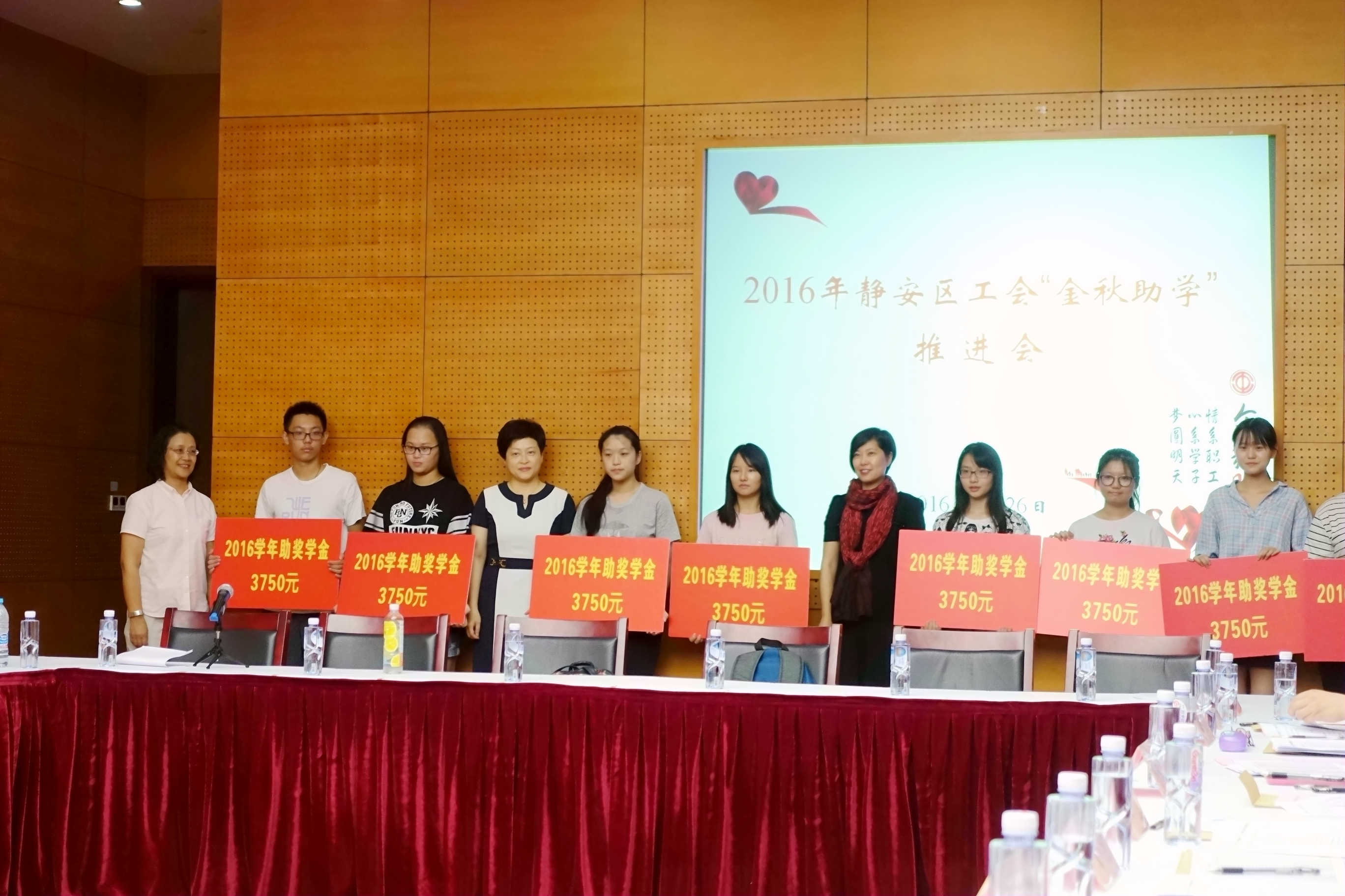 2016年“金秋助学”推进会在静安区海上文化中心二楼会议室进行。区总工会副主席金惠英等与会,上海利隆等30多家理事单位参加。