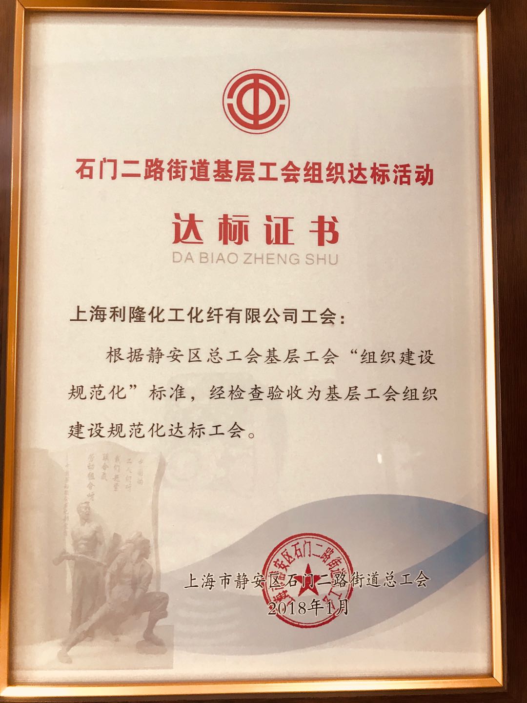 近日,上海利隆化工化纤有限公司工会获“基层工会组织建设规范化达标工会”荣誉称号。此次荣誉的获得是对公司工会工作的肯定。