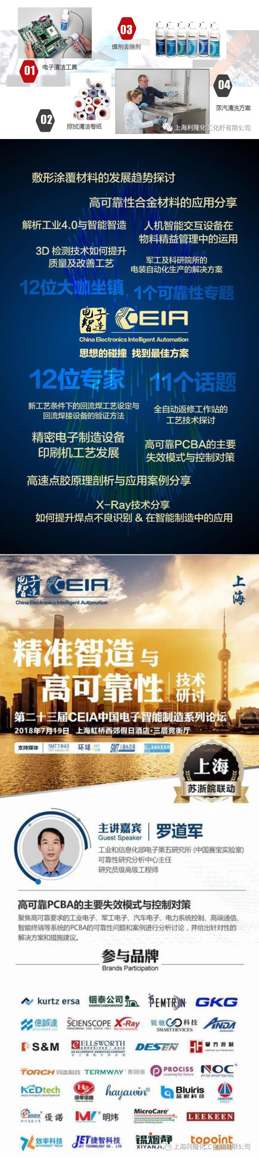 上海利隆化工化纤有限公司携手美国Microcare将参加2018年7月19日的CEIA精准智造与高可靠性技术研讨会。