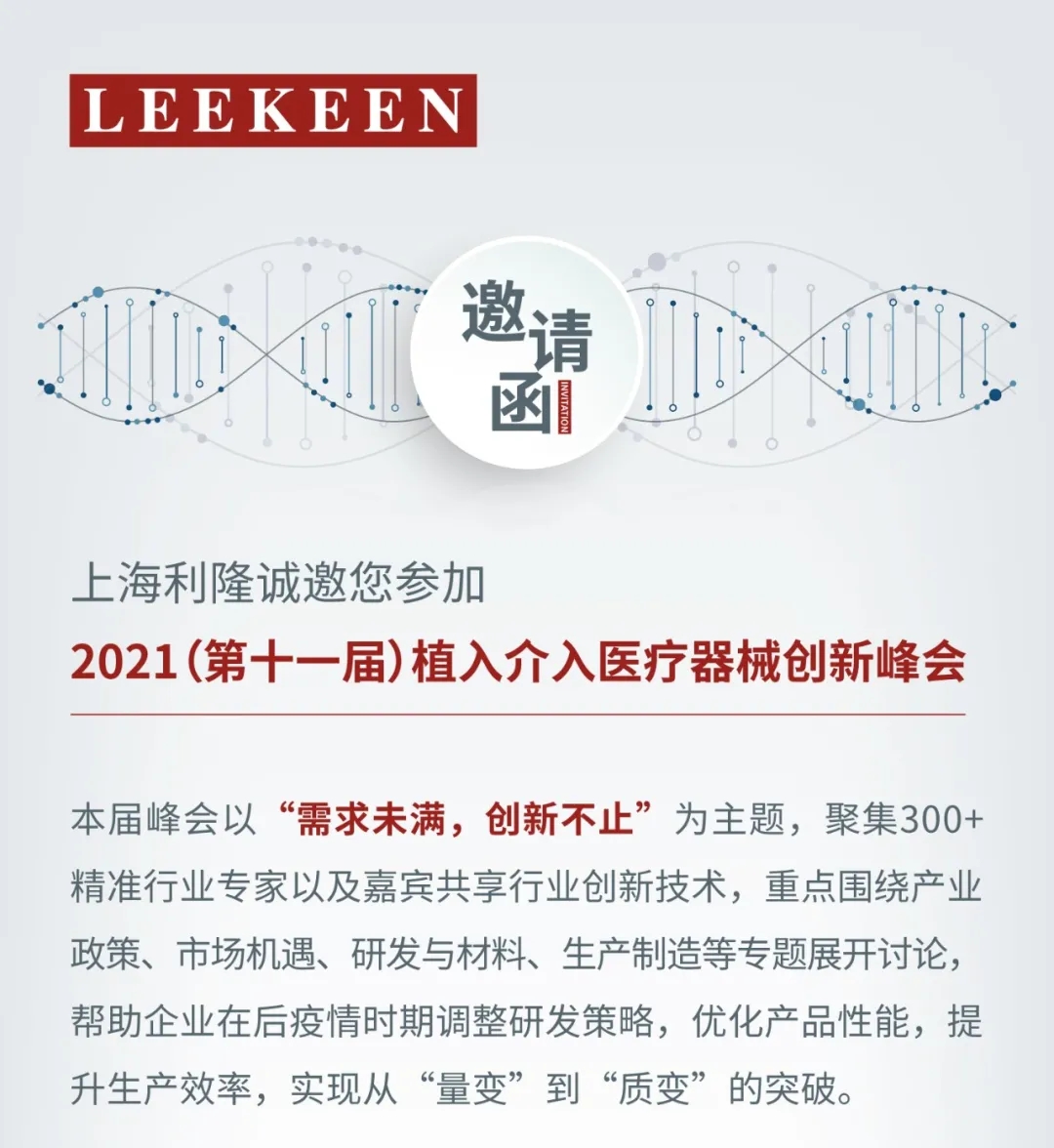 【邀请函】上海利隆诚邀您参加2021(第十一届)植入介入医疗器械创新峰会