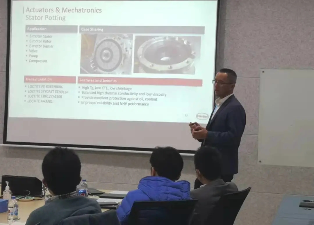 “ 汉高致力于提供汽车电子领域的专业综合解决方案。此次带来最新技术的分享:汽车PTC, ECU的FIPG/CIPG密封技术、电机定子导热灌封技术和单组份后固化导热凝胶技术,与大家一同探讨行业最核心需求,持续为客户提供价值。”