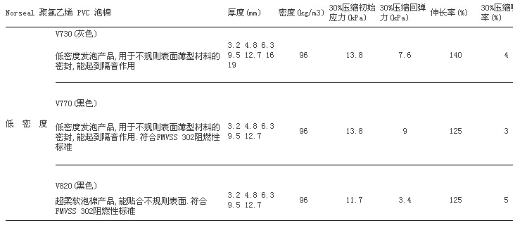 圣戈班 SaintGobain 低密度PVC泡棉NorSeal系列: V730 V770 V820