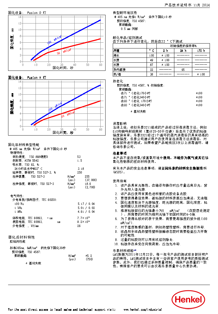 透明、淡黄色、光固化丙烯酸酯胶粘剂。适用于要求快速固化的应力敏感塑料。通过ISO 10993认证。