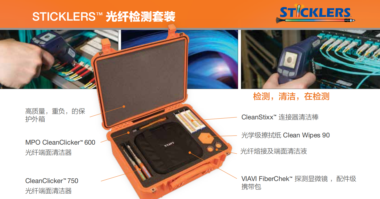 这是 Sticklers 光纤清洁套件的旗舰产品,因为它包括所有最好的清洁工具以及来自光纤测试、测量和检测领域的全球领导者 Viavi 的优质光纤检测探头。